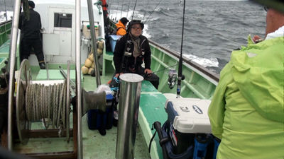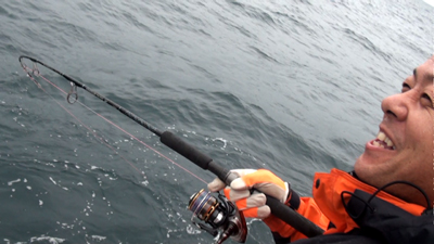 | 水深50メートルの海底で繰り広げられるジグバトル、取材班は思います「このバトルを水中で撮れればな〜」と・・・、 |
