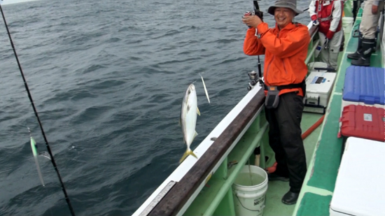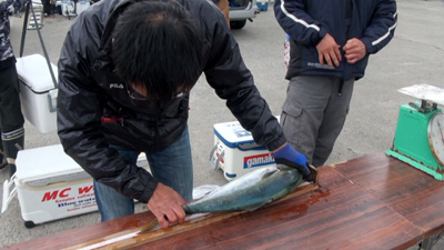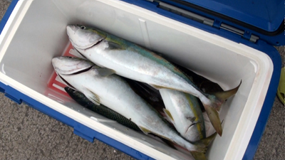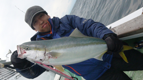 | 今年の仙台湾のアベレージはちょっと小さめ、70センチ弱ですが・・太って旨そうなイナダ級がつり人を魅了します。 |