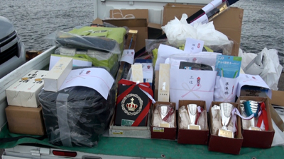| トラフグ41.5cmそしてまたトラフグ54cm〜!・・・、そして釣り人は軽トラに満載の賞品が誰の手に渡るのかが楽しみなのであります。 |