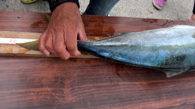 | 今回のバトル規定は、ジグで釣り上げられたイナダ級・ワラサ級・ブリ級の二匹の合計長寸で競われます。 |