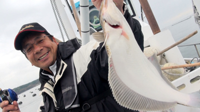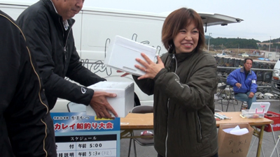 がまかつの亀井さんも志津川のマコガレイを堪能! |