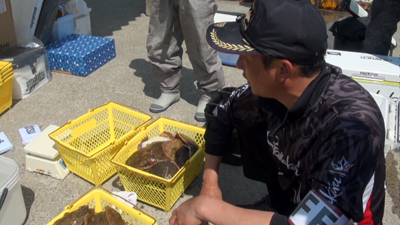 今回彼の使用した竿は、がま船カレイ一爽MH160 |