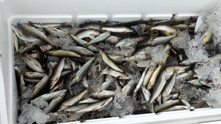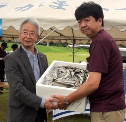 午後1時半、持ち込まれる「決勝のアユ」 |