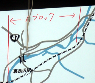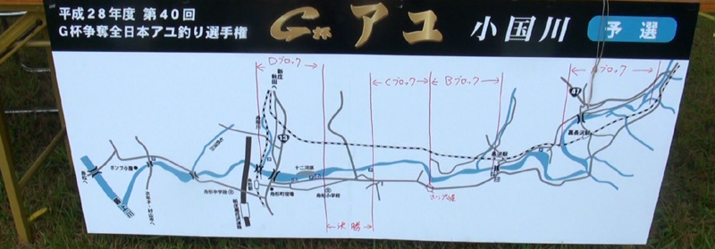 | 予選は決勝で使用する一の関本部前を除き、地図の通りA〜Dブロックの4ブロック、最上流部は長尾橋の上下となる。 |