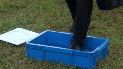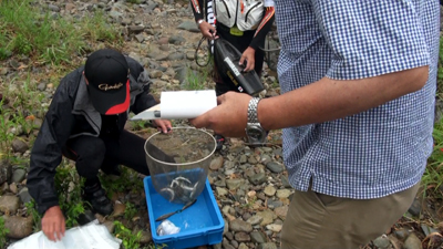 | 河川に立ち入る前の消毒です、小国川漁協では”冷水病”に気を使っております。 さていよいよ予選のスタート! |