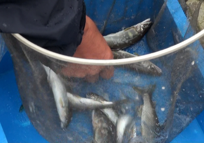 ナイロン0.2号の泳がせ釣りに徹した。 |