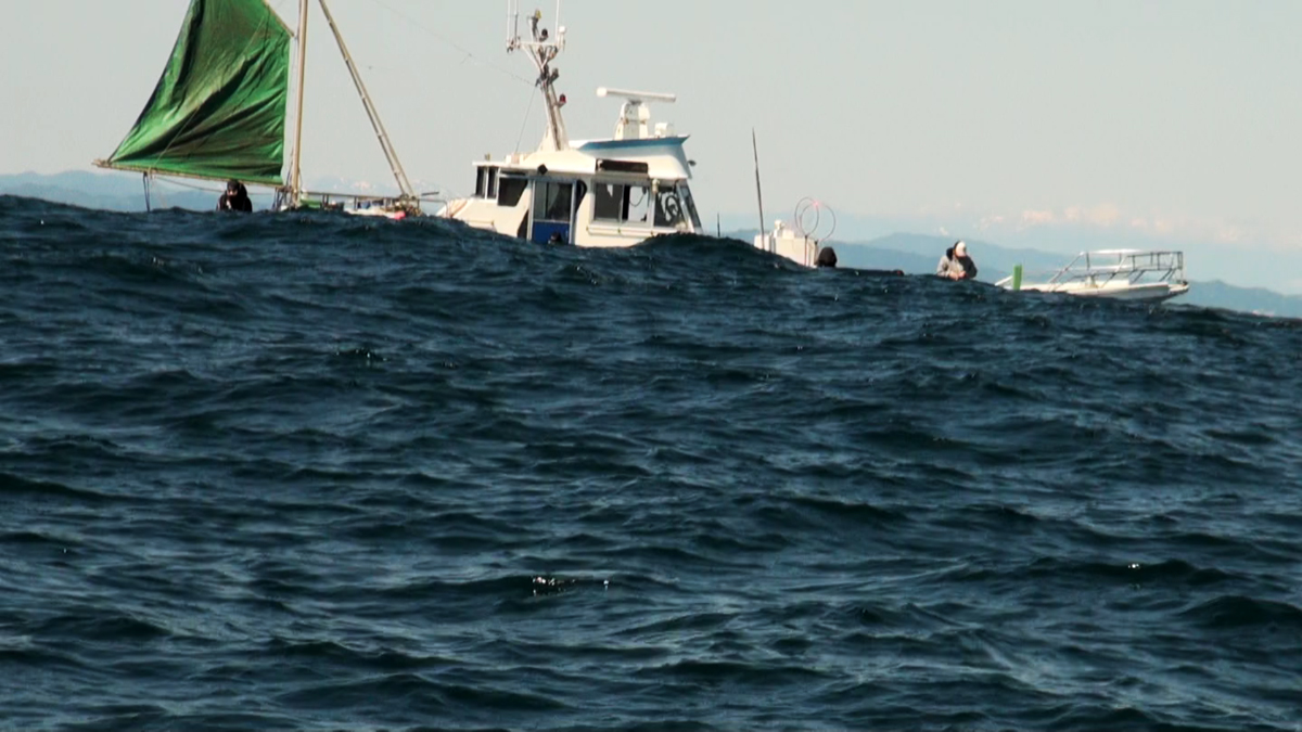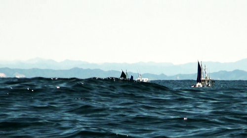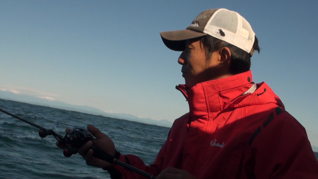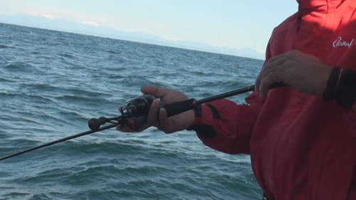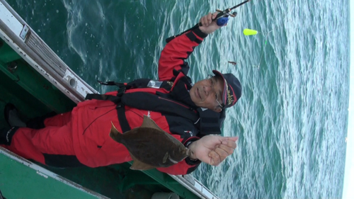 | 山下雄大さんのカレイ釣りはロッドの保持もカワハギ流なのか東北では見慣れないスタイル、大きなウネリに対するロッド操作には・・・ |