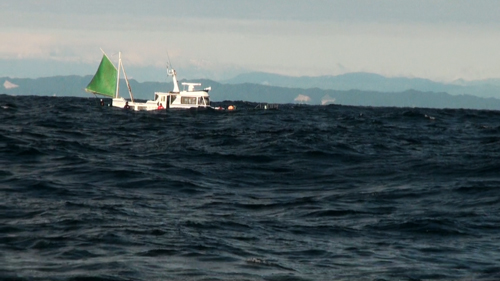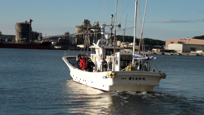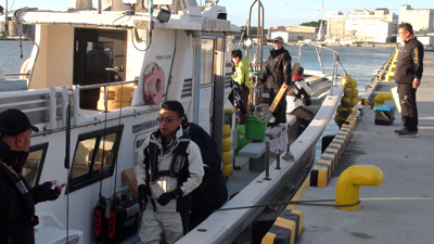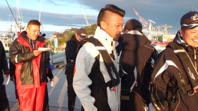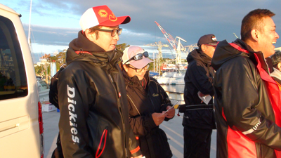 | おおっと、なにやらTVカメラが入っているようですがその事は後ほど記述致します、・・クーラーチェックを終えるといよいよ出港です!。 |