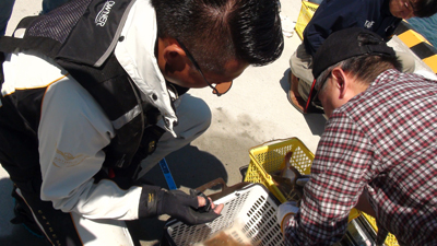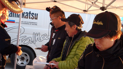 | 各船のトップにならなければ上位入賞は無し・・選手達が見守る中厳正に行われる検量、そして興奮の余韻を楽しむのも大会ならでわなのです。 |
