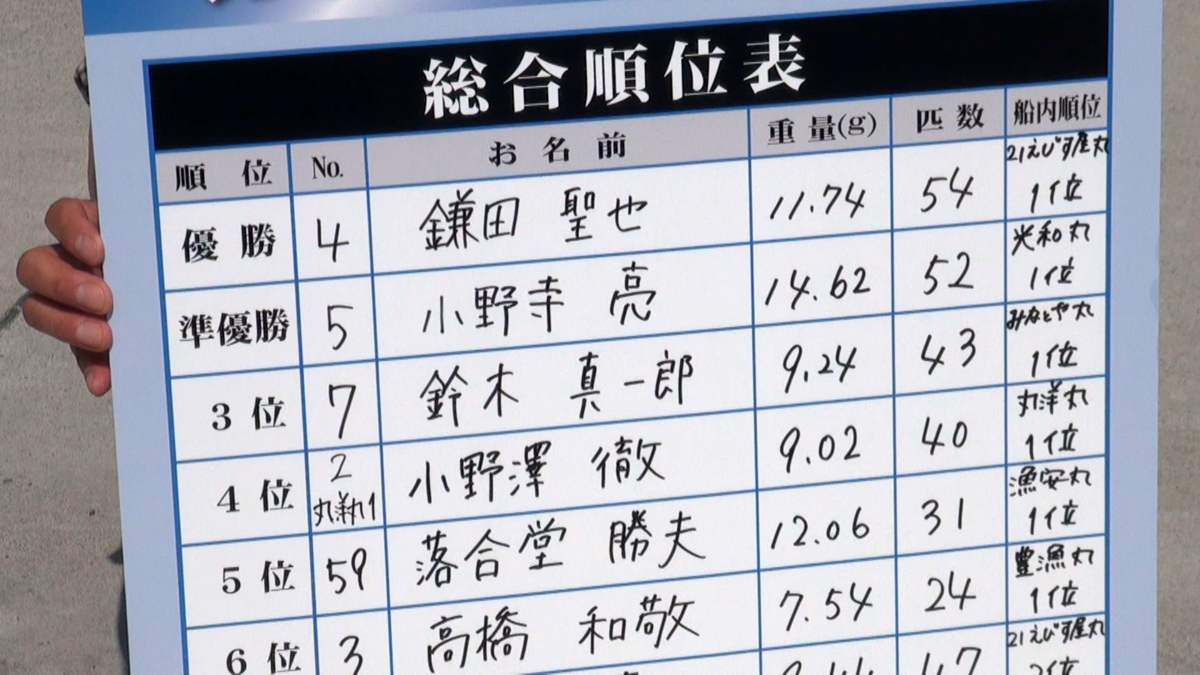 | 優勝:鎌田 聖也さん 54枚 11.74kg |
