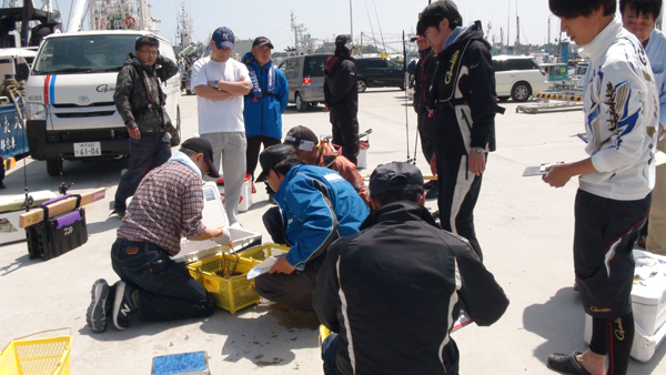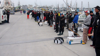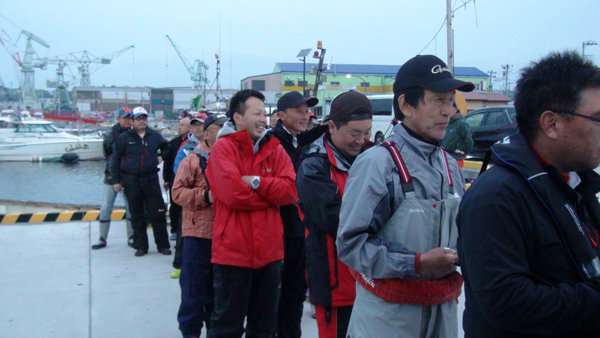 | AM4:30受付開始、船カレイのトーナメンター達にとってこの大会が一つの「集いの場」となっているようです。 |