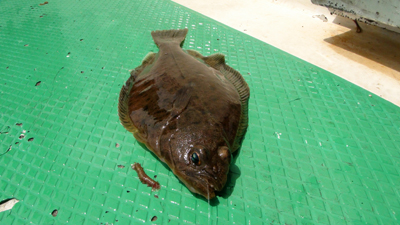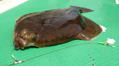 選手が激しく小突く方たちということで、集めてもらったカレイを細かい小突きで釣らせてもらったという感じ、ウネリに合わせて底をキープするような