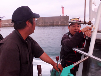 海の状況を船頭さんに聞く