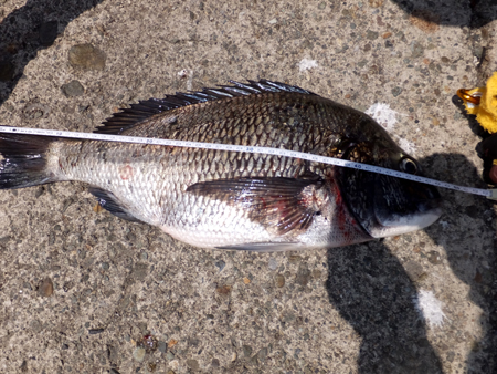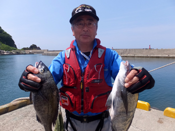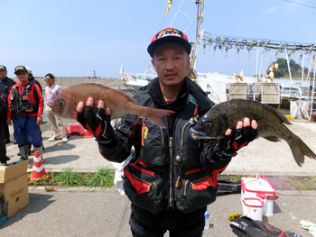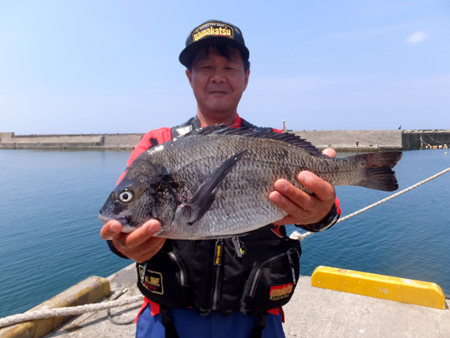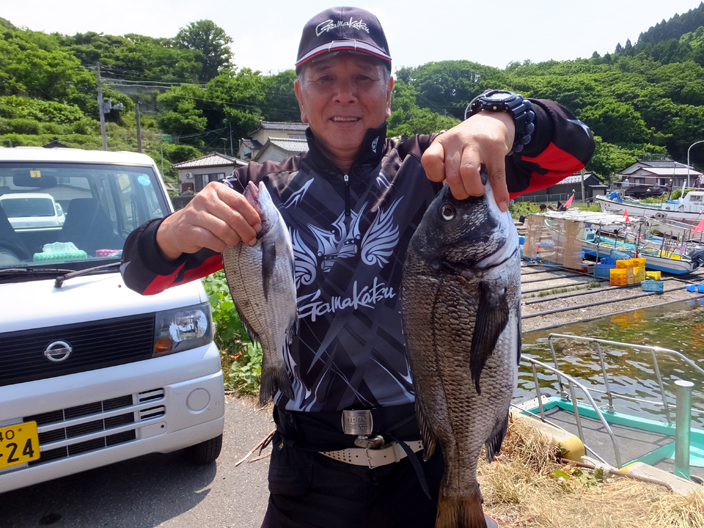 真鯛を釣り上げた小畑さんはクロダイも手中に収めておりました。 |