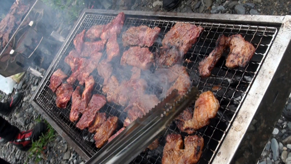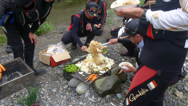 毎年恒例となりました、極上ハラミ&カルビ、そして焼きソバが参加者の会話を弾ませます。 |