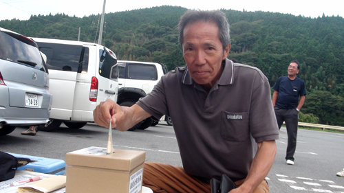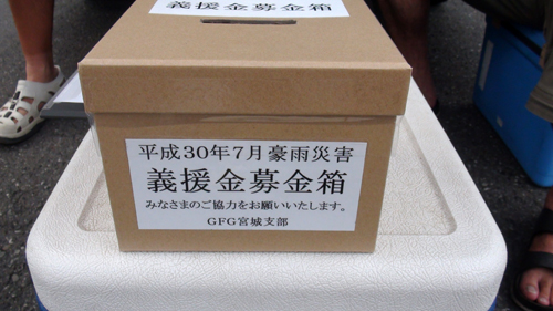 まずは東日本大震災でお世話になったお返しとして豪雨災害への義援金を・・・率先して募金する平さんなのであります。 |