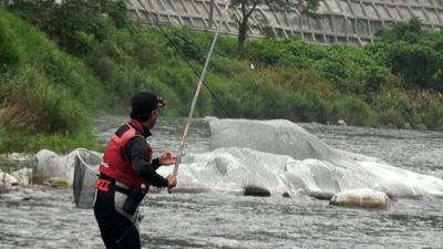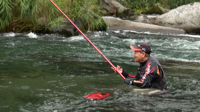 | 竿は「がま鮎 競技GTI引き抜き急瀬」 |