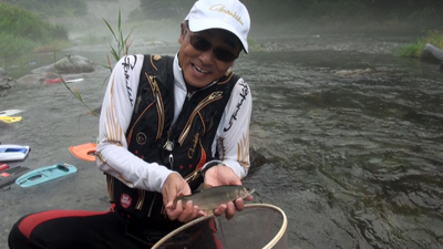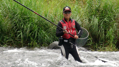 | 平さんは今年新調した究極の細身設計「がま鮎 DANCING SPECIAL H8.1M」で挑みます。以降大会スナップです。 |