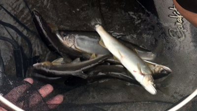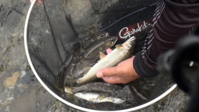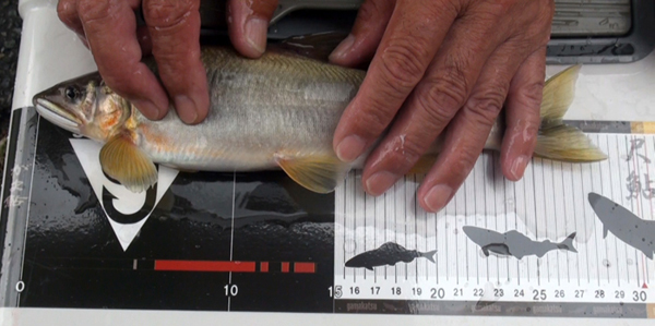 水面に姿を見せる気仙の鮎! |