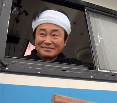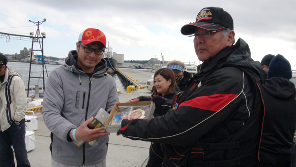 | 「さて、おめだぢ静かにしろ、表彰式やっから」と、海水面担当 崎芳文さんから・・ |