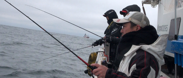 | 次の移動は水深40mを超えたポイント・・・、アタリの数も増え会話にも緊張感が・・・ |