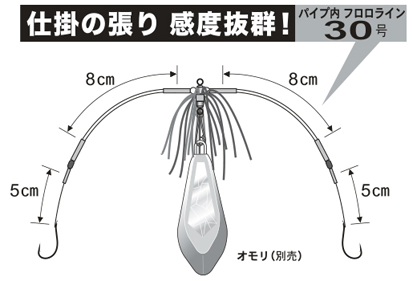 天秤部に極太フロロラインを使用することで仕掛に張りが出て小さなアタリも感じ取ることができます。