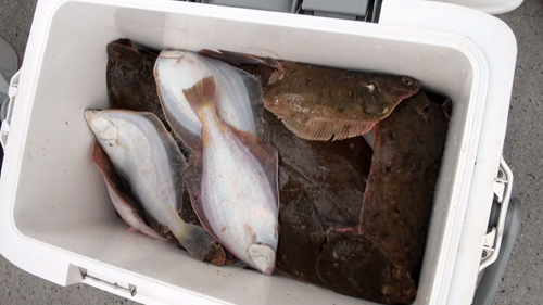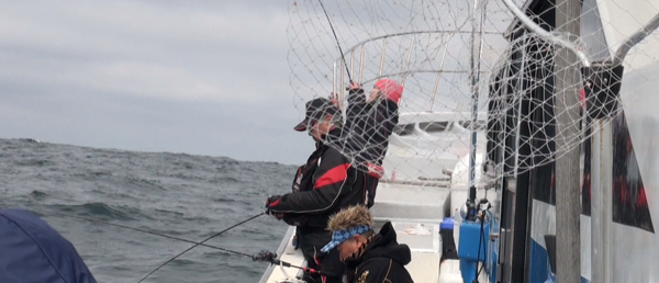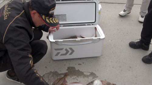 前日からの春の嵐で高いウネリと曇り空での開始となり、懇親会とは言え一応大会形式ですので、検量対象はカレイ類全種目20cm以上という規定でスタート!。