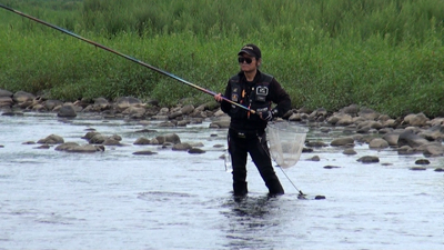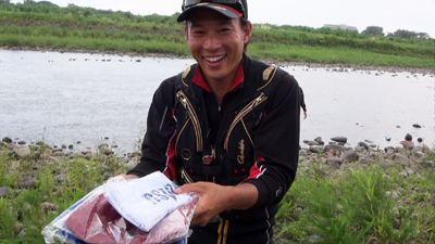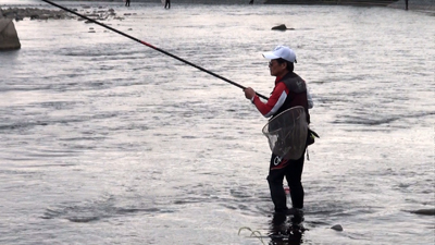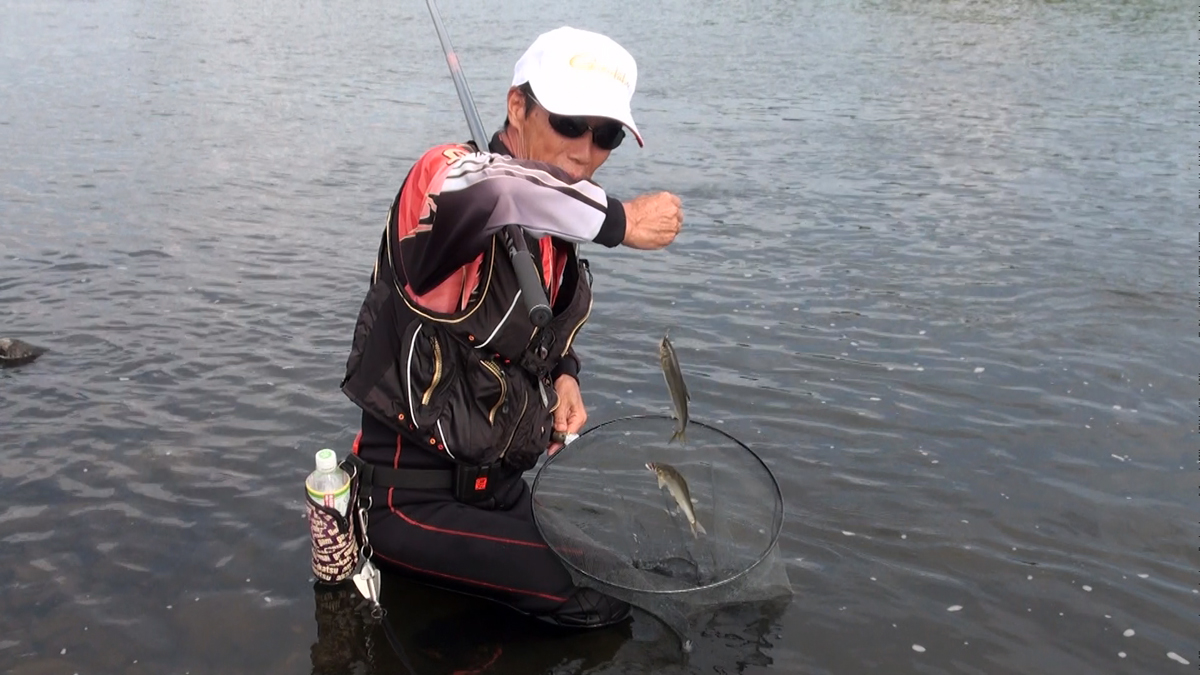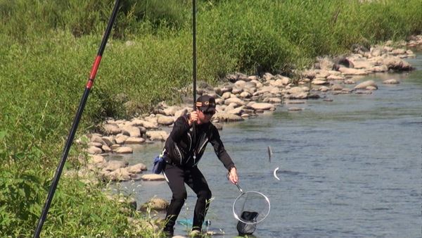 | 磯釣り師で鮎釣り3年目の小原さん、名取川通いが実って込み6匹! |