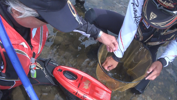 | 「こっち見せて〜」 「これで内水面担当の面目がたちました〜!」 |