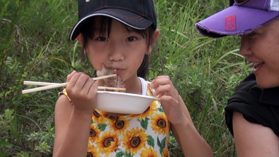 | 「あれっ、中まだ生だっちゃ〜!」 |