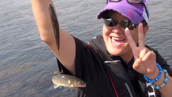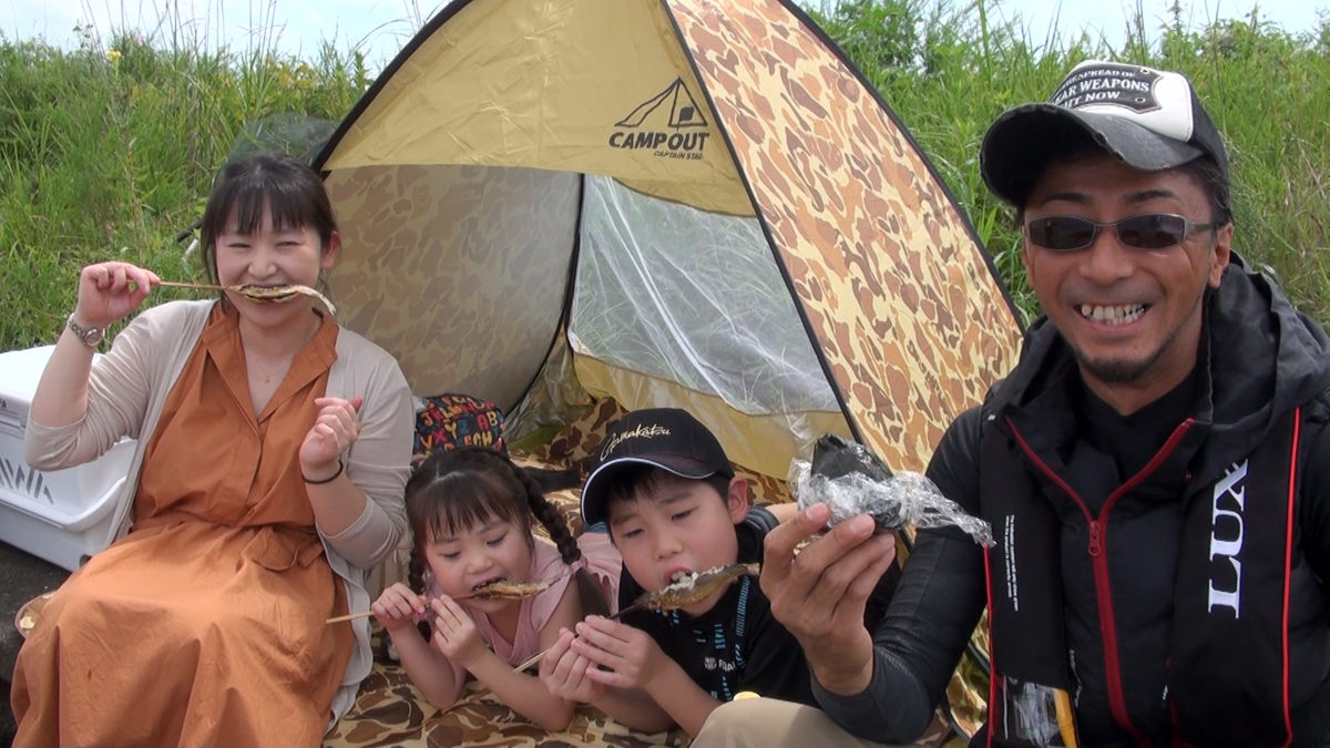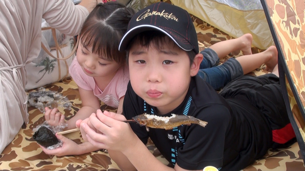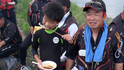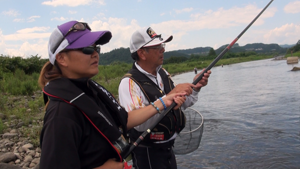 | 腹も満たされたとこで「鮎釣りに挑戦コーナー!」・・お盆は東京湾でタチウオ三昧のゆうチャン編 (講師:池田正義) |