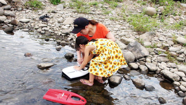 | 真夏に子供が川で遊ぶのは昔は当たり前でした、ひと夏の経験で成長する子供達に川で遊ぶ機会は重要です、家族で川で遊びましょう!。 |