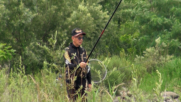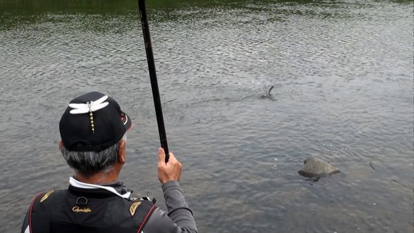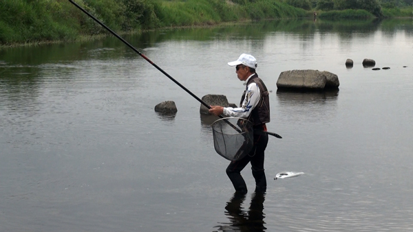 | 役員の遊佐君も泳がせ釣りで野鮎をゲットし・・ |