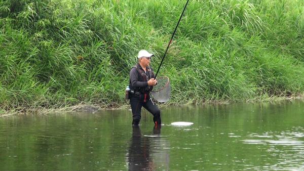 そしてその下流部(このエリアでは釣りの出来る最下流部)にも がまメンバーが二人・・・