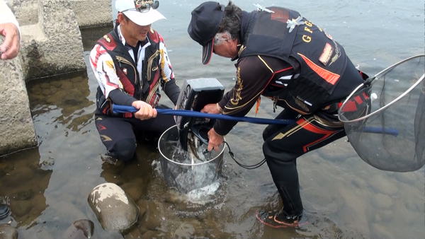 | 途中から海水面担当の土井俊光さんも千葉さんの応援に駆けつけました。(ただ笑わせていただけですけどね!) |