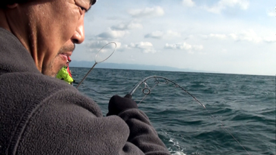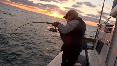 毎年恒例になった年末能代ジギング、「出れれば釣れる」」と トップレンジの丹野正文は語った。