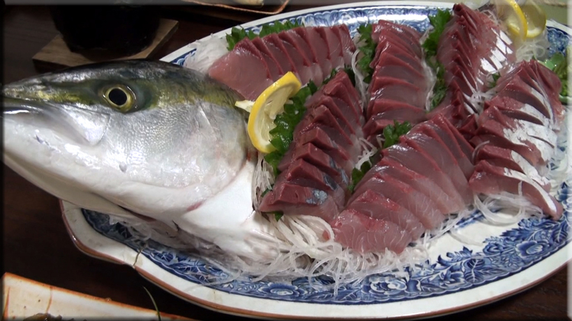 | パンパンに太ったワラサは刺身で最高!、釣るのもいいですが食べる事にも気を使って下さ〜い。 |