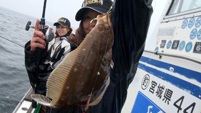 「晴天の仙台湾」と言いたい所ですが、取材日はあいにくの曇り空、でも〜晴々とした釣果で現場はハイテンション!