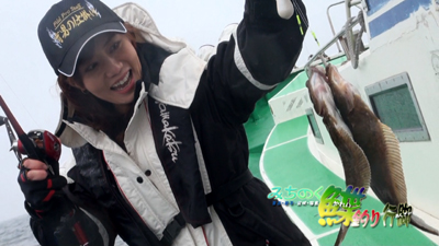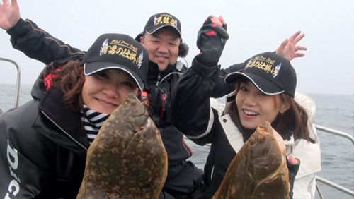| という事で、エンディングはプロのメグちゃんに締めていただきました〜、「とにかく全国の皆様、カレイを釣りにいらっしゃってくださ〜い!!。 |