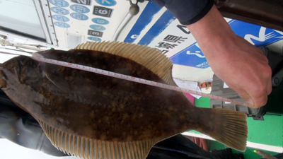 | 次々に掛かる仙台湾の大型カレイ、顔もほころびます |
