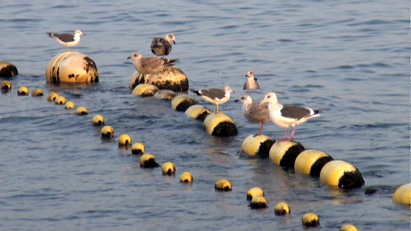 | 朝一の定置網風景です、今定置網では「カタクチイワシ」が豊漁とか!、いわしの通る海の街道なのです。 |