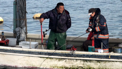 | 定置の網上げも一段落して |