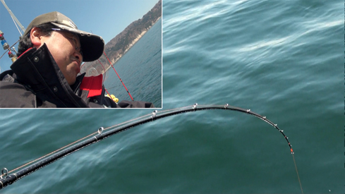 金華山周辺の海底起伏は想像以上、10Mも無い浅場から一気に70Mに落ち込む場所もあり釣りのポイントに船を着ける「流し釣り」は船長さんの腕の見せ所!。