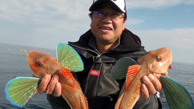 「ナンジャコリヤ〜」、ダブルのホウボウだ〜! |
