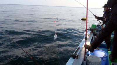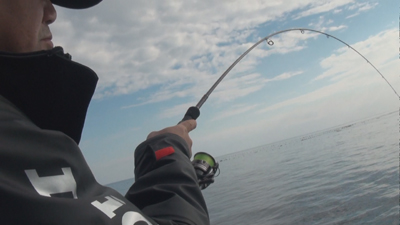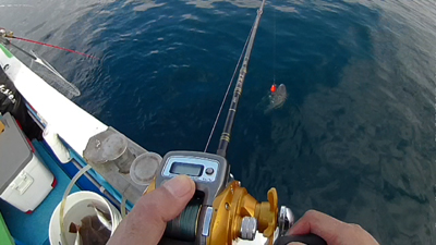 金華山周辺の海底起伏は想像以上、10Mも無い浅場から一気に70Mに落ち込む場所もあり釣りのポイントに船を着ける「流し釣り」は船長さんの腕の見せ所!。