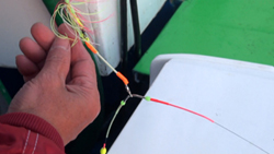 | 「取材班もやらせていただきます」、仕掛けは「キス天秤」、植田俊之氏の「キス天秤釣法」がなぜ釣れるのか只今「取調べ中」なのです。 |