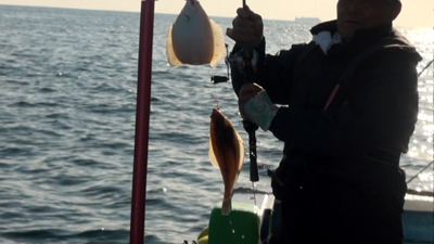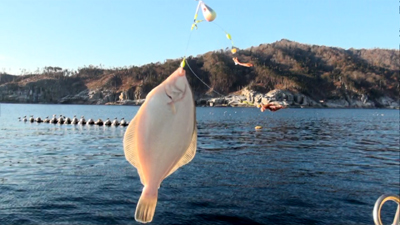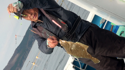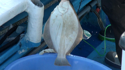 「ナメタガレイにはちょっと早いですが、金華山の定置網周りは冬季初めての試み、一か八かで
