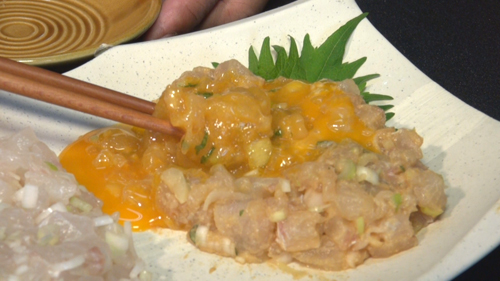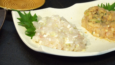 | 「なめろう」は二種類、胡麻油と葱味噌です。 |