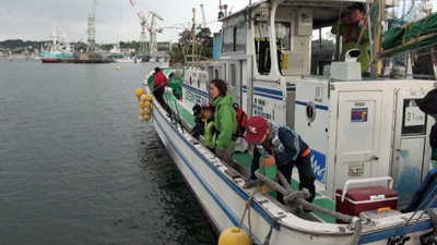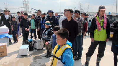 | 毎年参加はあたりまえ、船も大きく安全第一、子供達も大興奮で仙台湾へくり出します。 |