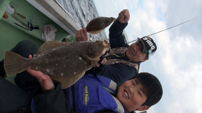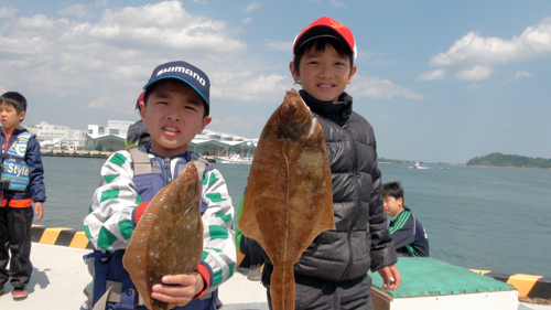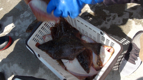 | 本日はイシガレイの大型が子供達を喜ばせたみたいです、とにかく釣ったカレイの総重量で勝負なのであります!! |